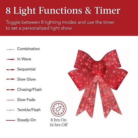 ๐ฅ8 LIGHT FUNCTIONS & TIMER: Control an array of light functions to program a personalized holiday light show every night; timer functions 8hrs On/16hrs/Off